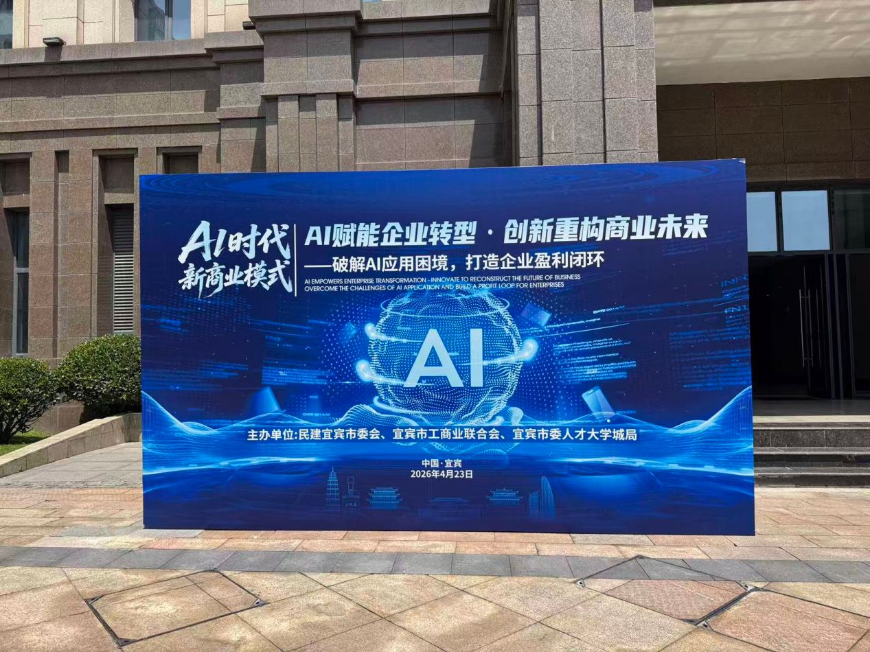 2026年4月23日,一场聚焦前沿科技与企业转型的盛会“AI赋能企业转型·创新重构商业未来,A1时代新商业模式活动”在四川宜宾成功举办。出席本次活动的领导有宜宾市工商联党组成员、秘书长刘晶晶女士,宜宾民建企业工委主任、宜宾安宁烧酒总经理胡学川先生。此次活动由民建宜宾市委会、宜宾市工商业联合会、宜宾市委人才大学城局联合主办,旨在深入探讨人工智能技术在企业转型中的关键作用,剖析新商业模式的构建路径,助力企业突破应用难题,打造可持续的盈利闭环。